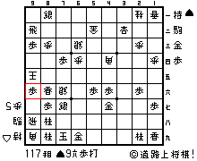 すでに歩のある筋(同じ縦の列)に、持ち駒の歩を打つことを二歩と呼び、反則負けとなります。